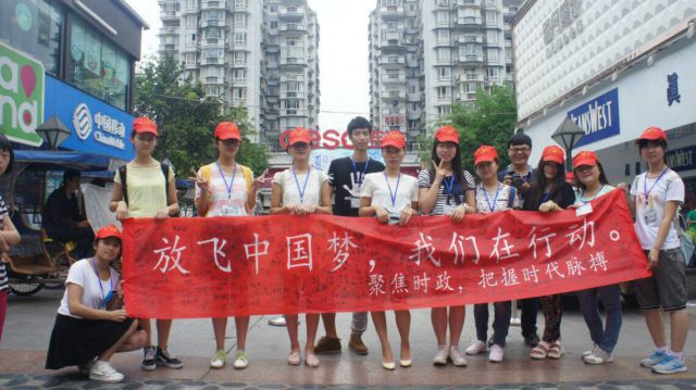 时政与民生息息相关,7月23日至7月25日,队员们分成两队,在雅安市雨城区进行了宣传和调查。一队队员对雅安市雨城区不同年龄段的群众进行了采访,了解他们对两会精神、全面深化改革和习总书记的系列重要讲话以及中国梦的认识和看法。同时询问他们对当前国家政策的满意程度和一些建议。另一队队员在人流量大的吉选超市前设点宣传,引起人们对时事政治的关注,倡导大家了解国情、了解社会,增强社会责任感和使命感。